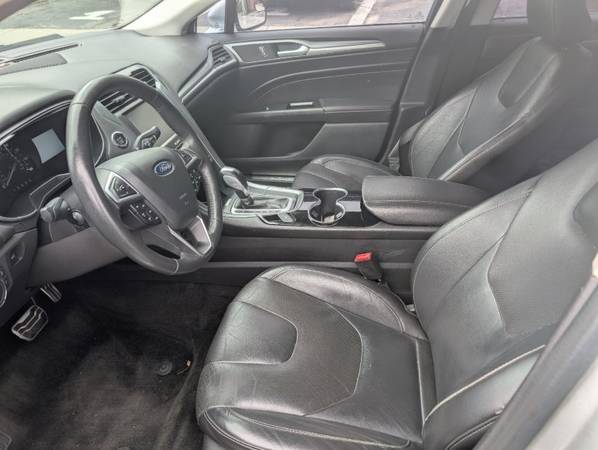 Introducing the sleek and powerful 2015 Ford Fusion Titanium, equipped with an EcoBoost 2.0L Turbo I4 engine that delivers an impressive 240 horsepower and 270 foot-pounds of torque. This top-of-the-line sedan offers a smooth and responsive driving experience with its 6-speed shiftable automatic transmission. But don't let its sporty performance fool you, the Fusion Titanium also boasts a spacious and luxurious interior, making it the perfect combination of style and functionality.