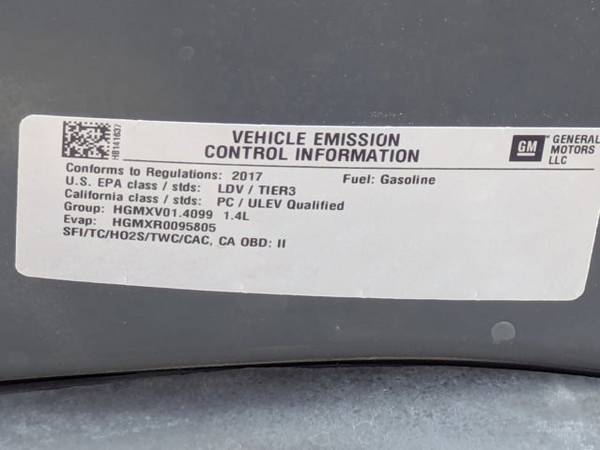 The following items have been reconditioned on this vehicle: new battery! * Leather Seats * Graphite Gray Metallic * Keyless Start * Audio System; Buick Intellilink Radio; AM/FM Stereo * Black Carbon Metallic Lower Exterior Accent Color * Ebony; Leather-Appointed Seat Trim * Emissions; Federal Requirements * Engine; Ecotec Turbo 1.4L Variable Valve Timing Dohc 4-Cylinder Sequential Mfi * Essence Preferred Equipment Group * License Plate Bracket; Front * Seats; Front Bucket * Transmission; 6-Speed Automatic; Electronically-Controlled With Overdrive * Wheels; 18" (45.7) AluminumThis vehicle includes a Money-Back Guarantee* and passed our precise inspection process. Best of all the price you see is the price you pay. No haggling. No back and forth. No pressure. And this price is so good it is guaranteed. *Money-Back Guarantee is valid for 5 days or 250 miles, whichever comes first. Subject to certain terms and conditions. See store for details. Some restrictions apply.