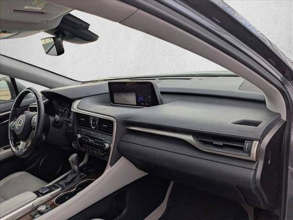 * 12.3" Navigation System * Wheels: 20" X 8" Split 5-Spoke Dark Silver * Power Tilt & Slide Moonroof * Blind Spot Monitor W/Rear Cross Traffic Alert * Premium Package * Heated & Ventilated Front Seats * Sun/Moonroof * Leather Seats * Navigation System * Heated Espresso Walnut Steering Wheel * Espresso Walnut Interior Wood Trim * Accessory Package * Touch-Free Power Rear Door * Lane Keeping Assist * Keyless Start * Rear Spoiler * Cooled Front Seat(S) * Nebula Gray Pearl * Stratus Gray; Leather Seat TrimThis vehicle includes a Money-Back Guarantee* and passed our precise inspection process. Best of all the price you see is the price you pay. No haggling. No back and forth. No pressure. And this price is so good it is guaranteed. *Money-Back Guarantee is valid for 5 days or 250 miles, whichever comes first. Subject to certain terms and conditions. See store for details. Some restrictions apply.2017 Lexus RX 350 F SPORT — Clean CARFAX , Low Miles , Luxury Sport SUV Turn every drive into an occasion with this 2017 Lexus RX 350 F SPORT, available now at Land Rover South Bay in Torrance, California. This two-owner SUV features a Clean CARFAX report, impeccable service history, and only 56,216 miles — an exceptional opportunity to own Lexus performance, luxury, and reliability in one beautifully styled package. Aggressive Style. Impeccable Refinement. The RX 350 F SPORT distinguishes itself with bold lines, an athletic stance, and signature Lexus spindle grille that projects confidence and sophistication. The F SPORT trim adds exclusive styling touches — including performance front fascia, unique 20-inch alloy wheels, and sport-tuned suspension — creating a perfect harmony of luxury and excitement. The sculpted body not only looks stunning but also enhances aerodynamics, delivering a quieter, more fuel-efficient drive. V6 Power. Lexus Precision. Under the hood, you’ll find a robust 3.5-liter V6 engine producing 295 horsepower paired with an 8-speed automatic transmission for seamless, responsive power. The Front-Wheel Drive configuration and sport-tuned dynamics give the RX 350 F SPORT a composed, confident ride whether you’re navigating Los Angeles streets or cruising along the Pacific Coast Highway. EPA-estimated 20 city / 27 highway MPG Drive Mode Select system (Eco, Normal, Sport, Sport+) Adaptive variable suspension for exceptional comfort and control This Lexus delivers both athletic performance and effortless daily drivability — the hallmark of the F SPORT lineage. Interior Excellence. Unmatched Comfort. Inside, the RX 350 F SPORT surrounds you with craftsmanship and advanced technology. The cabin features premium leather-trimmed sport seats, aluminum accents, and a driver-focused cockpit. Every surface feels thoughtfully designed for comfort and control. Highlights include: 12.3-inch Lexus display with navigation and voice command Apple CarPlay® and Bluetooth® connectivity Mark Levinson® premium sound system (available) Heated and ventilated seats Power moonroof and ambient interior lighting Hands-free power liftgate Every detail enhances the driving experience — from the precision of the steering wheel stitching to the effortless cabin quietness. Lexus Safety System+ Confidence Safety is a Lexus hallmark. This RX 350 F SPORT includes the Lexus Safety System+ suite, providing comprehensive protection and peace of mind: Pre-Collision System with Pedestrian Detection Lane Departure Alert with Steering Assist Dynamic Radar Cruise Control Intelligent High Beam Headlamps Combined with advanced structural engineering and 10 airbags, this F SPORT ensures peace of mind for every passenger. Why Buy from Land Rover South Bay At Land Rover South Bay, part of the AutoNation family, you’ll enjoy the confidence of transparent 1Price no-haggle pricing, expert service, and the highest reconditioning standards in the industry. Every pre-owned vehicle is meticulously inspected and prepared to deliver lasting performance and value. We proudly serve luxury buyers across Los Angeles, Redondo Beach, Palos Verdes, Manhattan Beach, and the South Bay area, offering a world-class experience with every vehicle purchase. Schedule Your Test Drive Today This 2017 Lexus RX 350 F SPORT blends athletic performance, refined craftsmanship, and Lexus dependability — an outstanding choice for drivers who demand more from their SUV. Visit Land Rover South Bay today or schedule your test drive online. Luxury. Precision. Confidence. — Available Now at Land Rover South Bay.