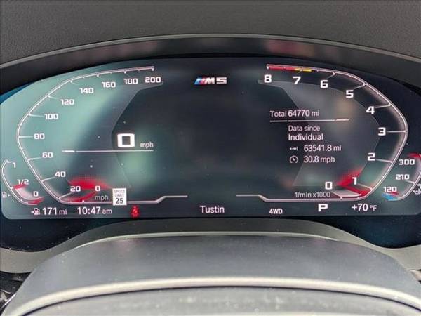 * Driving Assistance Plus Package * Wheels: 20" X 9.5 Fr & 20" X 10.5 Rr Black * Leather Seats * Navigation System * Lane Keeping Assist * Keyless Start * Rear Spoiler * Heads-Up Display * Aluminum Dark Carbon Structure Trim * Aragon Brown; Extended Merino Leather Upholstery * Singapore Gray MetallicThis vehicle includes a Money-Back Guarantee* and passed our precise inspection process. Best of all the price you see is the price you pay. No haggling. No back and forth. No pressure. And this price is so good it is guaranteed. *Money-Back Guarantee is valid for 5 days or 250 miles, whichever comes first. Subject to certain terms and conditions. See store for details. Some restrictions apply.You can find this 2020 BMW M5 and many others like it at We'll Buy Your Car Riverside. Is it possible to fall in love with a vehicle? It is when your vehicle is as prestige as the BMW M5. Comfort. Performance. Safety. Enjoy all three with this well-appointed AWD 2020 BMW. The M5 has been lightly driven and there is little to no wear and tear on this vehicle. The care taken on this pre-owned vehicle is reflective of the 63,514mi put on this BMW. Just what you've been looking for. With quality in mind, this vehicle is the perfect addition to take home.