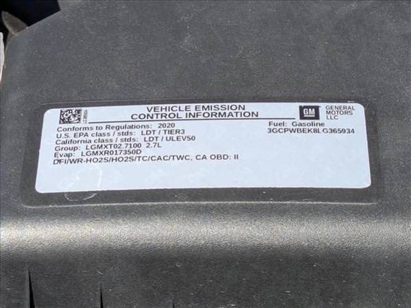* Custom Value Package * Custom Convenience Package * Trailering Package * Infotainment Package * Lpo; Underseat Storage * Power Outlet; Instrument Panel; 120-Volt * Lpo; All-Weather Floor Liners * Air Conditioning; Single-Zone Manual; Semi-Automatic * Lpo; Wheel Locks; Set Of 4 * Seats; Front 40/20/40 Split-Bench * 4G Lte Wi-Fi Hotspot Capable * Alternator; 220 Amps * Audio System; Chevrolet Infotainment 3 System * Automatic Stop/Start * Custom Preferred Equipment Group * Defogger; Rear-Window Electric * Emissions; California State Requirements * Engine; 2.7L Turbo * Gvwr; 6800 Lbs. (3084 Kg) * Hitch Guidance * Jet Black; Cloth Seat Trim * Led Cargo Area Lighting * License Plate Kit; Front * Onstar And Chevrolet Connected Services Capable * Power Outlet; Bed Mounted; 120-Volt * Rear Axle; 3.42 Ratio * Remote Vehicle Starter System * Satin Steel Metallic * SiriusXM Radio * Tailgate; Gate Function Manual * Theft-Deterrent System; Unauthorized Entry * Tires; 275/60R20 All-Season; Blackwall * Transmission; 8-Speed Automatic; Electronically Controlled * Wheels; 20" X 9" (50.8 Cm X 22.9 Cm) Silver Painted AluminumThis vehicle includes a Money-Back Guarantee* and passed our precise inspection process. Best of all the price you see is the price you pay. No haggling. No back and forth. No pressure. And this price is so good it is guaranteed. *Money-Back Guarantee is valid for 5 days or 250 miles, whichever comes first. Subject to certain terms and conditions. See store for details. Some restrictions apply.