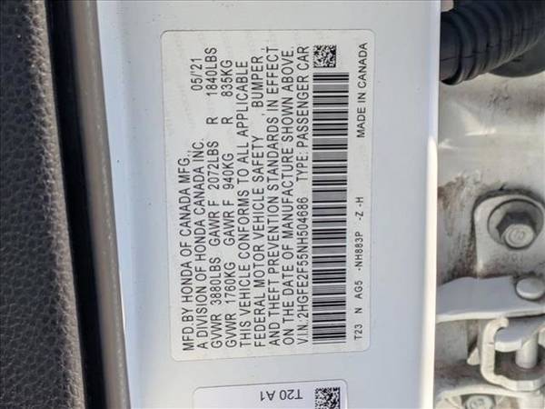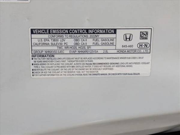 * Platinum White Pearl * Lane Keeping Assist * Keyless Start * Black; Cloth Seat TrimThis vehicle includes a Money-Back Guarantee* and passed our precise inspection process. Best of all the price you see is the price you pay. No haggling. No back and forth. No pressure. And this price is so good it is guaranteed. *Money-Back Guarantee is valid for 5 days or 250 miles, whichever comes first. Subject to certain terms and conditions. See store for details. Some restrictions apply.You can find this 2022 Honda Civic Sedan Sport and many others like it at AutoNation Hyundai Valencia. The 2022 Honda offers compelling fuel-efficiency along with great value. You will no longer feel the need to repeatedly fill up this Honda Civic Sedan Sport's gas tank, in part because of it's superb EPA rating. Low, low mileage coupled with an exacting maintenance program make this vehicle a rare find. The quintessential Honda -- This Honda Civic Sedan Sport speaks volumes about its owner, about uncompromising individuality, a passion for driving and standards far above the ordinary. There is no reason why you shouldn't buy this Honda Civic Sedan Sport. It is incomparable for the price and quality.