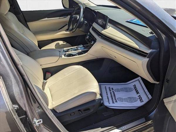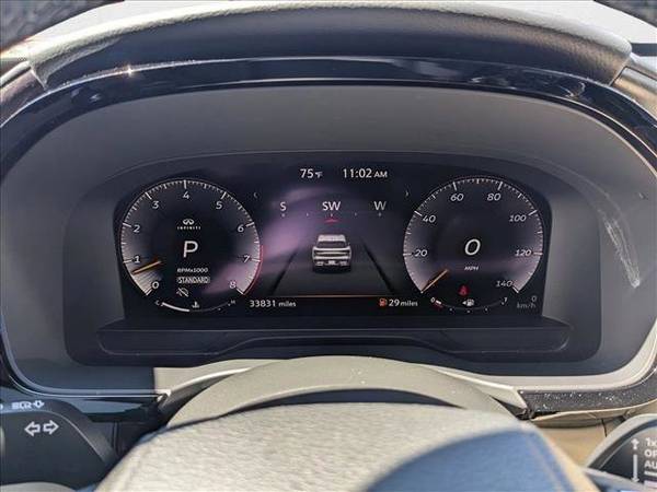 The following items have been reconditioned on this vehicle: all new tires! * Panoramic Roof * [M92] Cargo Package * [B93] Silver Roof Rail Cross Bars * Leather Seats * Navigation System * 3rd Row Seat * [B92] Splash Guards * Lane Keeping Assist * Keyless Start * Rear Spoiler * Cooled Front Seat(S) * [C03] 50 State Emissions * Graphite Shadow * Sandstone; Leather-Appointed Seating SurfacesAutoNation Hyundai Valencia has a wide selection of exceptional pre-owned vehicles to choose from, including this 2022 INFINITI QX60. Do so much more with one vehicle. This INFINITI QX60 gives you everything you need an automobile to be. Opulent refinements married with exceptional engineering make this the kind of car you'll want to own for a lifetime. It's not a misprint. And the odometer isn't broken. This is a very low mileage INFINITI QX60. A rare find these days. This vehicle won't last long, take it home today.