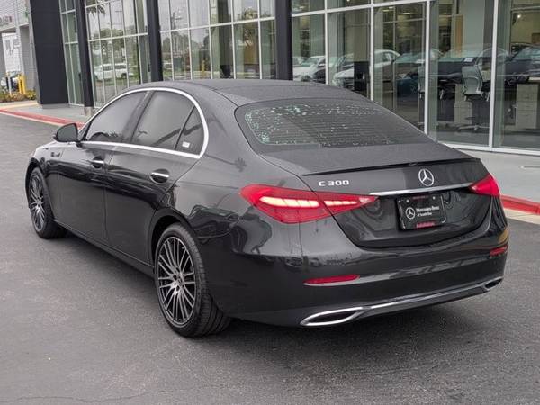* Graphite Grey Metallic * Sun/Moonroof * Body Color Rear Spoiler * Chrome Rear Trim * Wheel Locking Bolts * Keyless Start * Rear Spoiler * First Aid Kit * Black; Mb-Tex Upholstery * Crystal Grey Fabric Headliner * Metal Weave Trim * Wheels: 18" MultispokeThis vehicle includes a Money-Back Guarantee* and passed our precise inspection process. Best of all the price you see is the price you pay. No haggling. No back and forth. No pressure. And this price is so good it is guaranteed. *Money-Back Guarantee is valid for 5 days or 250 miles, whichever comes first. Subject to certain terms and conditions. See store for details. Some restrictions apply.Check out this pre-owned 2022 Mercedes-Benz C-Class we recently got in. Very few vehicles meet the exacting standards of Certified Pre-Owned status. This Mercedes-Benz C-Class C 300 has met those standards. The Mercedes-Benz C-Class C 300's pristine good looks were combined with the Mercedes-Benz high standard of excellence in order to make this a unique find. This wonderfully fuel-efficient vehicle offers a supple ride, quick acceleration and superior styling without sacrificing MPGs. It's not often you find just the vehicle you are looking for AND with low mileage. This is your chance to take home a pre-owned and barely driven Mercedes-Benz C-Class. You can find this 2022 Mercedes-Benz C-Class C 300 and many others like it at Mercedes-Benz of South Bay. With amenities and luxuries befitting a modern day king, this splendorous coach reigns supreme. If you are looking for a vehicle with great styling, options and incredible fuel economy, look no further than this quality automobile. Low, low mileage coupled with an exacting maintenance program make this vehicle a rare find. This Graphite Grey Metallic Mercedes-Benz is clean and shiny exterior makes it look like it came straight from the factory.