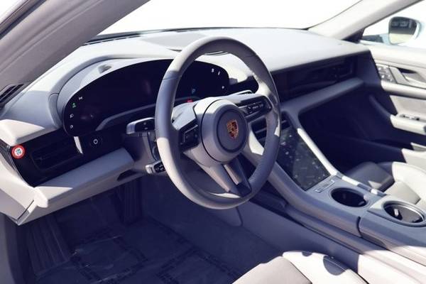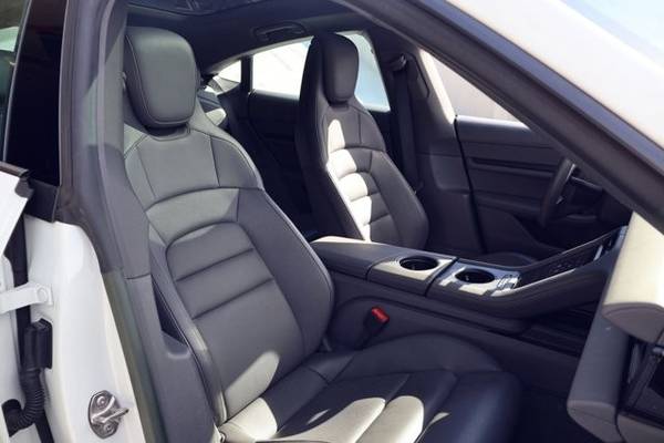 * Slate Grey; Race-Tex Seat Trim * Navigation System * Lane Keeping Assist * Keyless Start * Rear Spoiler * WhiteThis vehicle includes a Money-Back Guarantee* and passed our precise inspection process. Best of all the price you see is the price you pay. No haggling. No back and forth. No pressure. And this price is so good it is guaranteed. *Money-Back Guarantee is valid for 5 days or 250 miles, whichever comes first. Subject to certain terms and conditions. See store for details. Some restrictions apply.2022 Porsche Taycan 20,476 Miles Premium Package Panoramic Roof BOSE PDLS+ Surround View 14-Way Seats $93,930 MSRP This 2022 Porsche Taycan is finished in White over a Slate Grey interior and shows 20,476 miles . Power is delivered by a permanent-magnet synchronous electric motor driving the rear wheels through a 2-speed rear-mounted transmission , providing smooth, instantly responsive performance. This example was optioned to a $93,930 MSRP and includes the Premium Package , BOSE Surround Sound, fixed glass panoramic roof, PDLS+ headlights, Surround View, Lane Change Assist, power 14-way seats with ventilation, ambient lighting, and more. Factory warranty began June 10, 2022 . Factory Options & Equipment (Total MSRP $93,930) Exterior & Wheels White exterior (0Q) 19 Taycan S Aero Wheels ($1,260) All-season tires for 19 wheels Wheel center caps with colored Porsche crest ($190) Power-folding exterior mirrors (6XV) Fixed glass panoramic roof (3FG) Premium Package ($7,310) BOSE Surround Sound System Ambient Lighting (QQ1) Lane Change Assist (79J) Ventilated front seats (4D3) Power Seats (14-way) with Memory Package (Q2J) Porsche Dynamic Light System Plus (PDLS+) Storage Package (QE1) Additional Options Ionizer (2V4) Surround View camera system (KA6) Mobile Charger Connect ($1,120) Standard Equipment 79.2-kWh lithium-ion battery pack 2-speed rear transaxle unique to Taycan Adaptive air cooling system Porsche Recuperation Management Porsche Connect with Online Navigation Digital instrument cluster Center 10.9 touchscreen infotainment display Apple CarPlay & Android Auto 3D haptic-touch center console Partial leather interior Power tailgate Keyless start LED taillights with light bar Rain-sensing wipers Front and rear ParkAssist Dual-zone automatic climate control Advanced occupant protection system Heated front seats Split-folding rear seats Exterior Finished in White , this Taycan presents a clean, modern look highlighted by its sculpted fenders and signature full-width LED taillight bar. The Fixed Glass Panoramic Roof provides a bright, open cabin feel and enhances the roofline visually. The 19 Taycan S Aero Wheels give the car a sleek efficiency-oriented appearance, and the optional power-folding mirrors improve practicality. All exterior lightingincluding PDLS+ matrix headlights functions properly. Interior The cabin is trimmed in Slate Grey , offering a minimalist, contemporary layout that complements the Taycans high-tech environment. The Premium Package adds Ambient Lighting , BOSE audio , ventilated seats , and the excellent 14-way power seats with memory. The multi-screen cockpit includes the curved digital gauge display, the center touchscreen, and the haptic-feedback lower console. The Surround View camera system and Lane Change Assist enhance safety and usability. Mechanical & Driving Impressions The Taycan delivers the classic Porsche driving feellinear, controlled, and plantedpaired with instant electric torque. The unique 2-speed rear transmission allows both strong initial acceleration and high-speed efficiency. Steering is precise, braking is strong with seamless recuperation, and ride quality is comfortable yet confidence-inspiring. The BOSE system adds premium sound, and the panoramic roof creates an airy driving environment. Summary This 2022 Porsche Taycan combines clean styling, desirable options, and modern Porsche EV performance. With a $93K MSRP , Premium Package, PDLS+, BOSE, Surround View, power 14-way seats, fixed panoramic glass roof, LCA, mobile charger, and a well-kept 20,476 miles, it presents as a highly specd and well-maintained example of Porsches groundbreaking electric sedan.