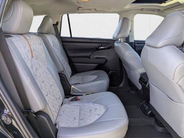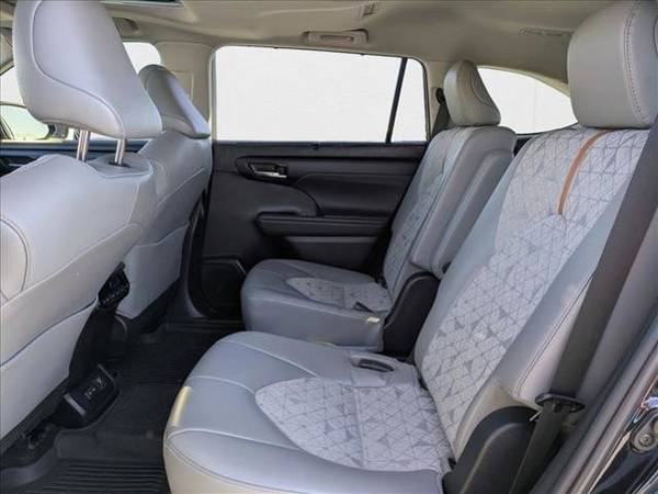 * Tow Hitch (Tms) * Sun/Moonroof * Navigation System * 3rd Row Seat * All Weather Floor & Cargo Liner (Tms) * Cargo Cross Bars (Tms) * Cargo Cover (Tms) * Mudguards (Tms) * Wheel Locks (Tms) * Lane Keeping Assist * Rear Bumper Applique (Tms) * Keyless Start * Rear Spoiler * 50 State Emissions * Bronze Edition * Digital Rearview Mirror * Graphite; Softex Seat Trim * Midnight Black MetallicThis vehicle includes a Money-Back Guarantee* and passed our precise inspection process. Best of all the price you see is the price you pay. No haggling. No back and forth. No pressure. And this price is so good it is guaranteed. *Money-Back Guarantee is valid for 5 days or 250 miles, whichever comes first. Subject to certain terms and conditions. See store for details. Some restrictions apply.This 2023 Toyota Highlander Hybrid Bronze Edition is proudly offered by Jaguar Land Rover Woodland Hills In their original incarnation, SUVs were chiefly owned by folks who valued utility above sport. Not anymore! The Toyota Highlander Hybrid Bronze Edition redefines the SUV and makes the perfect all around family companion. Indulge yourself with one of the most highly crafted, most luxurious automobiles available today. Save money at the pump with this fuel-sipping Toyota Highlander. Find the quickest driving route in this Toyota Highlander Hybrid Bronze Edition using the installed navigation system. This nav system is one of the easiest to use and will help get you where you need to go quickly!