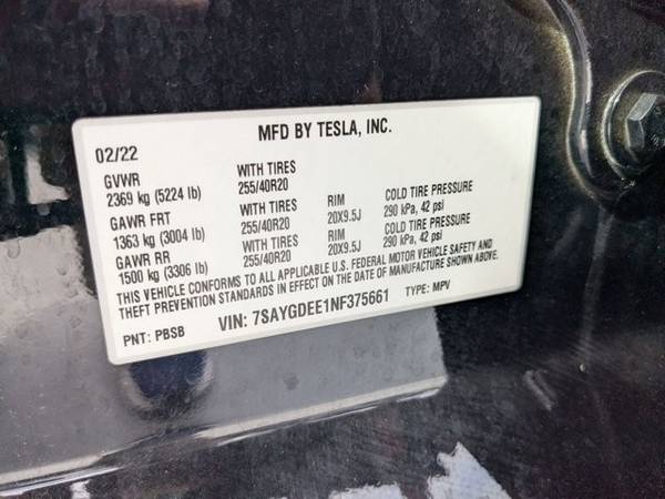 * Solid Black * Panoramic Roof * Navigation System * Lane Keeping Assist * Keyless Start * Black; Premium Seat TrimThis vehicle includes a Money-Back Guarantee* and passed our precise inspection process. Best of all the price you see is the price you pay. No haggling. No back and forth. No pressure. And this price is so good it is guaranteed. *Money-Back Guarantee is valid for 5 days or 250 miles, whichever comes first. Subject to certain terms and conditions. See store for details. Some restrictions apply.2022 Tesla Model Y Long Range – AutoNation Certified , Clean CARFAX , 1 Owner , All-Wheel Drive , Long Range Electric Luxury SUV Take your driving experience to the next level with this AutoNation Certified 2022 Tesla Model Y Long Range, now available at Land Rover South Bay, serving Torrance and greater Los Angeles County. With a Clean CARFAX, 1-owner history, and only 43,835 miles, this Model Y represents the perfect combination of cutting-edge technology, exhilarating performance, and sustainable driving—all backed by AutoNation’s unmatched certification process. Finished in sleek black exterior paint with a modern, minimalist interior, this Model Y Long Range delivers instant torque, zero emissions, and exceptional range that make it one of the most desirable EVs on the road today. Advanced Performance Meets Everyday Practicality The 2022 Tesla Model Y Long Range features dual-motor All-Wheel Drive, providing outstanding traction and control across Southern California’s diverse terrain. The result? Lightning-fast acceleration (0-60 mph in just 4.8 seconds) and incredible stability, whether you’re merging onto the 405 or carving through the canyons of Malibu. Enjoy an EPA-estimated range of 330 miles per charge, plus access to Tesla’s expansive Supercharger network, making long-distance travel as effortless as it is efficient. This all-electric SUV also features: Autopilot with advanced driver assistance Massive 15-inch touchscreen interface Over-the-air software updates Panoramic all-glass roof Premium sound system Heated front and rear seats The spacious cabin comfortably seats five adults, while the rear cargo area and front trunk (frunk) combine to deliver generous storage for daily commutes or weekend getaways. AutoNation Certified Peace of Mind At Land Rover South Bay, every AutoNation Certified vehicle undergoes a 125-point inspection by factory-trained technicians to ensure the highest standards of quality and reliability. This Model Y includes: 125-Point Certified Inspection Clean CARFAX Vehicle History Report 90-Day / 4,000-Mile Limited Warranty 5-Day / 250-Mile Money-Back Guarantee AutoNation 1Price – No Haggle, No Pressure With AutoNation’s transparent buying process and nationwide network, you’ll drive home confident that you’re getting an exceptional value with world-class service. Designed for the Los Angeles Lifestyle Perfect for Los Angeles EV enthusiasts, this Model Y offers the ideal mix of sustainability and sophistication. From Santa Monica to Palos Verdes, the all-electric drivetrain, whisper-quiet ride, and instant acceleration redefine what it means to drive a luxury SUV in Southern California. It’s the smart, stylish, and eco-conscious choice for professionals, families, and anyone ready to experience the future of driving—today. Visit Land Rover South Bay in Torrance, CA Join the growing number of Southern California drivers embracing the power of electric performance. Visit Land Rover South Bay, part of the AutoNation family, and take this AutoNation Certified 2022 Tesla Model Y Long Range for a test drive today. Experience modern luxury, zero emissions, and next-level technology—all in one extraordinary SUV. Schedule your test drive now before it’s gone.