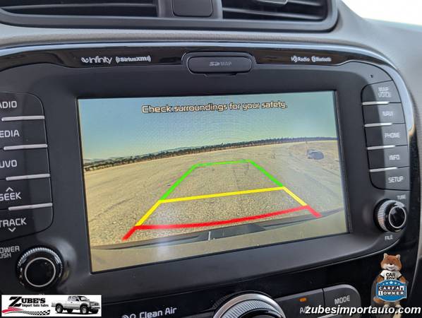 Loaded with gray two-tone leather interior, Bluetooth handsfree calling, Infinity audio, backup camera, steering