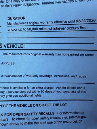 BMW warranty goes until 02/22/2028 or 50,000 miles, whichever occurs first