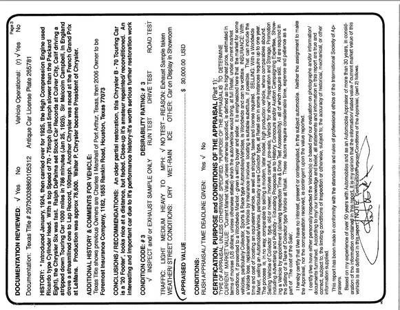 I am selling a 1925 CHRYSLER B-70. It was a show room car for a dealership. When the dealership got remodeled, it sat in storage for a few years. I posted to appraisal we had done when the was on display with all the photos of how it looked before it got dirty.