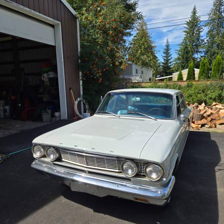 Rare beautiful 1964 Ford Fairlane with 260 V8, only 84,000 original miles and almost all original. Repainted to original color, interior restored to original 2 tone blue, new water pump, fuel pump, oil pump, tires, and stereo; otherwise all original. Runs and looks great, and can be a daily driver. Original color and beautiful original restored 2 tone blue interior.