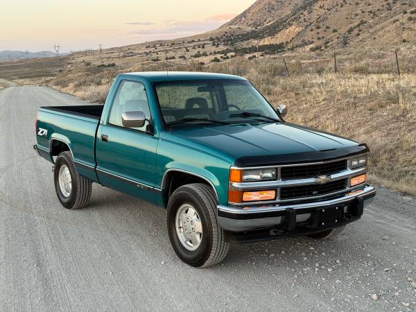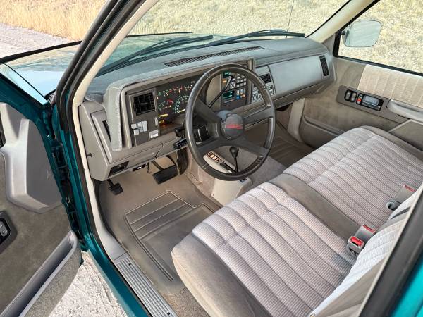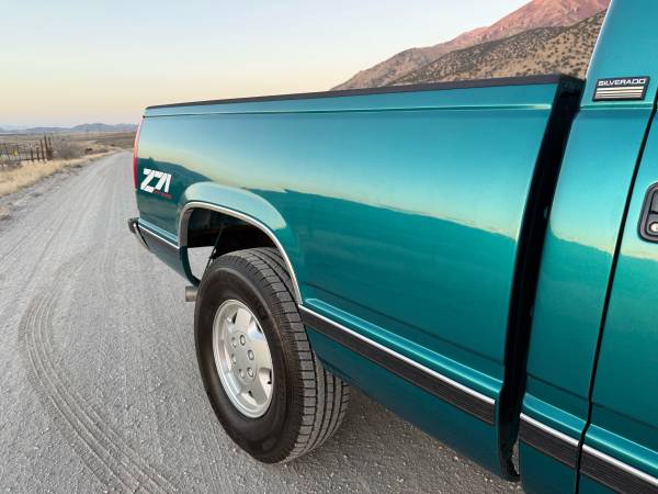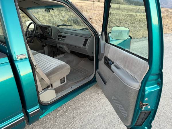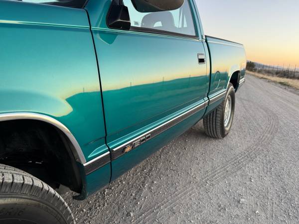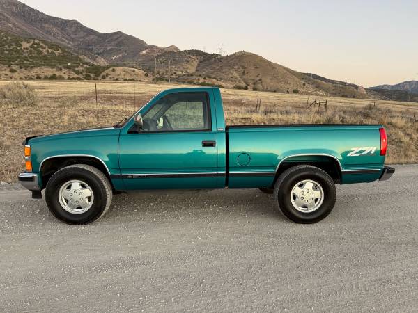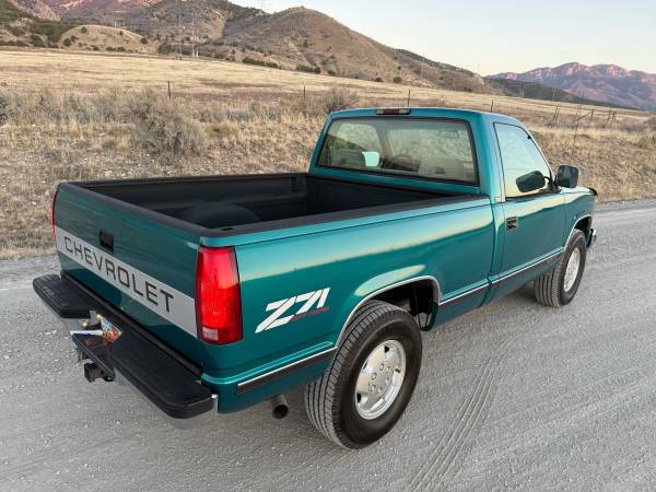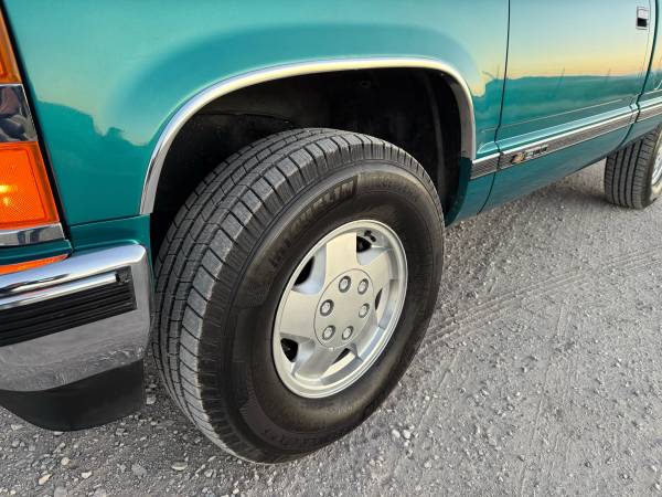 Beautiful teal green metallic Z71 K1500 short bed. Stars, runs and drives like new. Automatic transmission shifts smooth. 4x4 works great as well. Interior and exterior in Excellent shape. Has been garage kept keeping paint like new. Truck is all stock. No leaks, freshly serviced and ready to go. Has original window sticker from 1994.