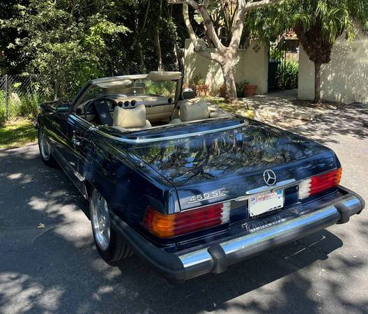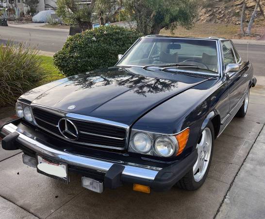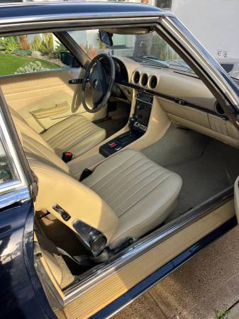 1975 Mercedes Benz 450SL convertible Color: midnight blue Interior: tan leather V8 Low mileage (78k) Automatic Garaged Original am/fm radio Removable hardtop Papers in hand Registered