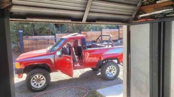180k miles, confirmed via carfax, carfax also shows just 3 owners, Runs amazing, Rare spec'd "deluxe" package 4runner in this bright red exterior, with red interior, with the factory retro decals, 22re with the 5 speed, wing windows in doors, a/c etc...