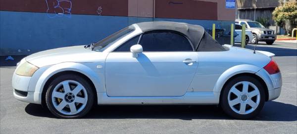 2001 Audi TT manual transmission. Runs great, engine is really good. Only 113k miles, super low for the year. No check engine lights at all. Transmission is good too, but the slave cylinder for the clutch needs to be replaced before it will be able to go in gear. It will not be able to be driven before it is replaced. Shouldn't be too expensive, it's just taking up space for me. 4 cylinder turbo engine, good power, fun to drive. Really light and powerful too. Took it to the mountains several times. Upgraded speakers and Bluetooth unit, convertible is in great shape, nice leather interior. Take it as is for parts or to fix it. I'm not going to drive it as I've got another car, so I don't see the point in spending money on it. I can tow it to you if desired. Just by the way, I was quoted around $1100 by a junker, I just don't want such a good running car to go to waste, so I'd prefer not to junk it. Calls and texts preferred.