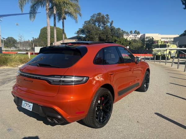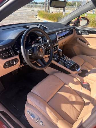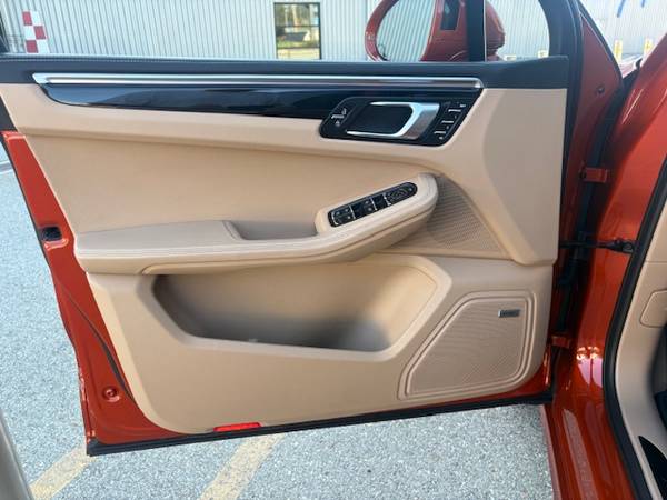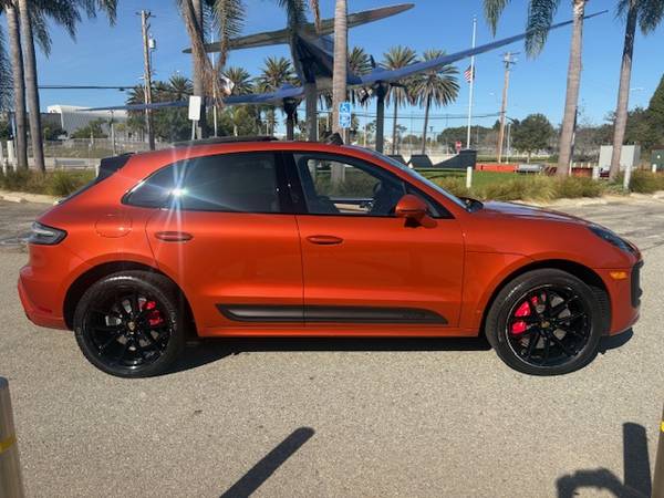 2022 PORSCHE MACAN GTS - Papaya Metallic over Mojave beige leather - Adaptive air suspension - Porsche Torque Vectoring Plus - interior trim high gloss black - lane keep assist - Sport chrono package - Adaptive cruise control - 21-inch GT design wheels in high gloss black - Surround view camera system - Thermal and Noise Insulated glass - Premium Plus package - Ventilated seats - Front and Rear heated seats - 14-Way Luxury Power seats - Panoramic sunroof - BOSE Surround sounds system - LED headlights in black - Both passenger wheels have curb rash.