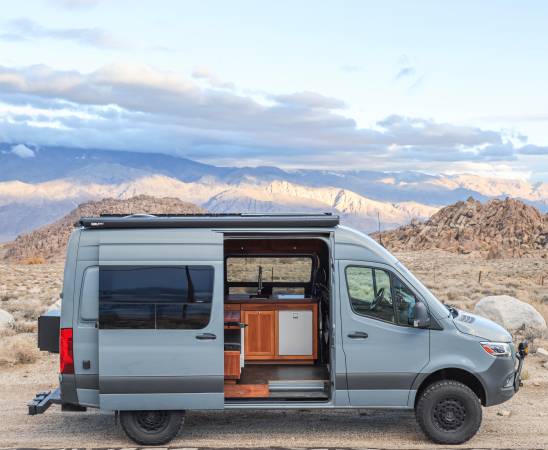 2020 Sprinter Van 2500, 4x4, high roof, 144" wheelbase. Diesel. Four season rig ready for any adventure. Built with black walnut cabinetry, redwood counter top and cedar ceiling with havlock wool insulation throughout. 41,000 miles.