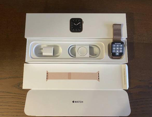 Apple Watch Series 5 GPS + Cellular - 44MM Stainless Steel Case with Milanese Loop - Gold ($800 + tax retail price). Mint, great condition - no scratches or dents! Comes with Gold Milanese Loop -...