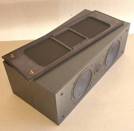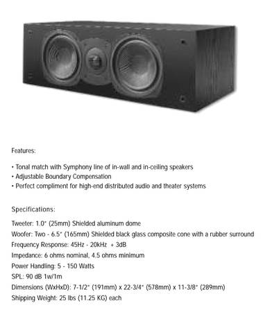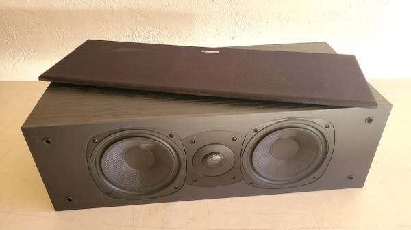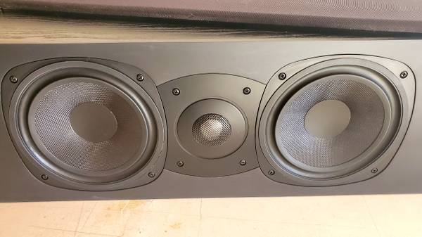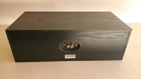 Sonance center cabinet speaker with minor cosmetic wear from light use. Has a rich sound quality that would enhance any solid state sound system. Can be used as Center, left or right speaker. Can be powered at 5-150 watts. 3-way (2 woofers/ 1 tweeter) with gold connectors and low frequency (boundry compensation) adjusting switches. A solid addition to any audio setup. See full specs in photos.