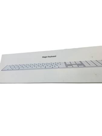 Description:This pre-owned Apple Magic Keyboard A1843 is in excellent condition, still in its original plastic wrap and open box. It comes exactly as shown in the photos, with no cables included. Sleek and responsive, this full-size keyboard with numeric keypad is perfect for Mac users seeking a reliable and stylish typing experience.