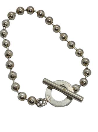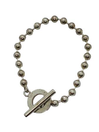 Description: This Gucci Boule Chain Toggle bracelet, made of sterling silver, weighs 14.9 grams, with a 4.7mm width and 7" length. The bracelet is in preloved condition and comes alone without accessories. Please note that the Gucci logo is somewhat fading. A stylish and elegant addition to your jewelry collection.