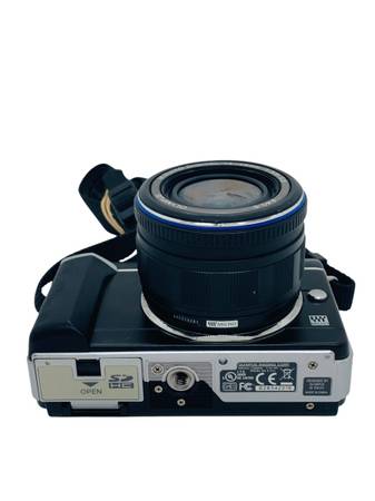 Description: For sale, we have an Olympus PEN E-PL1 Digital Camera in Black with an Olympus ED 14-42mm 1:3.2-5.6L Lens. This camera is in good working condition and has been tested to ensure functionality. It shows normal signs of prior use but remains fully operational. The included lens shows a minor blemish on the glass area, which does not affect image quality or performance.