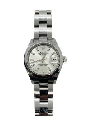 Description: This authentic Rolex Datejust 279160 features a 28mm stainless steel case, smooth bezel, and silver dial with index hour markers. Powered by a Rolex Caliber 2236 automatic movement with a 55-hour power reserve. The watch includes a stainless steel Oyster bracelet with folding Oysterclasp. Pre-owned and in excellent condition with normal signs of wear such as hairline scratches on the case and bracelet. Keeps time accurately and functions as intended. No original box or papers included. This watch currently fits a size 6" wrist, extra links not included. This watch was manufactured in between 2019-2020. Please view photos for more details. Thank you.