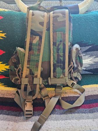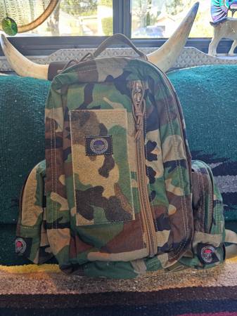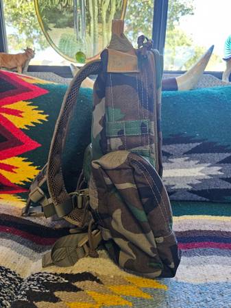 Brand new woodland camouflage backpack. Custom made to order. I added two side pouches and large internal pockets. It took 3 months to receive. Number 10 ykk zippers and heavy duty 1000 nylon. This is a smaller 20cubic inches. This is built like a tank. With the backpack and additional pouches paid $450 so since I have never used you will get this awesome gear for a big savings