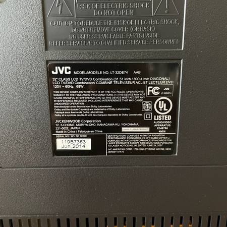 JVC monitor or TV for sale. It's in excellent condition. Has good color and graphics and settings where you can modify it to your needs. Has several ports so you can connect it to your laptop or Roku through HDMI. There are other ports as well that are shown in the photos. Comes with the same branded remote. Pick up is near 130 North Alexandria Ave. 90004.