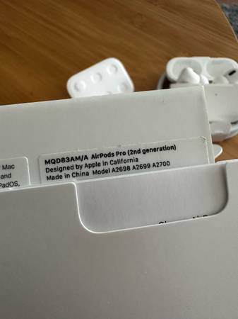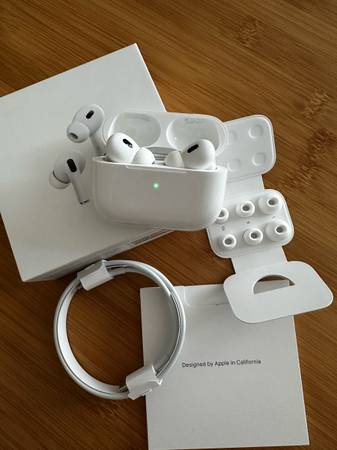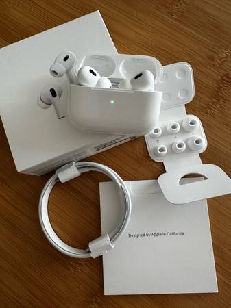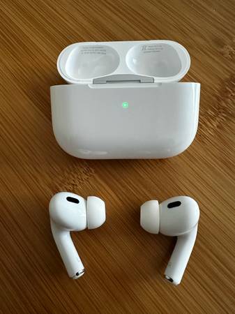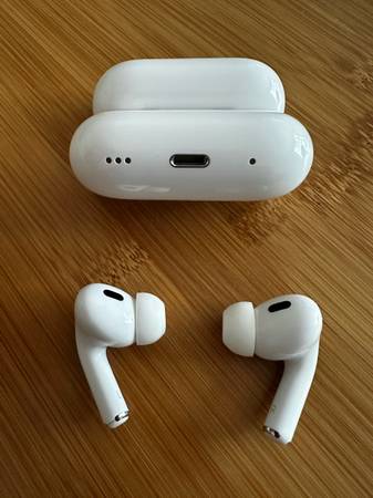 Hi, I’m selling my AirPod Pro 2 (2nd gen). In excellent condition! No drops, no dents, no chips, flawless condition. It features an H2 chip for improved Active Noise Cancellation, Adaptive Audio, and Personalized Spatial Audio. Longer battery life, a charging case with a U1 chip for Precision Finding, a speaker, and lanyard loop, and is compatible with multiple wireless and wired charging methods. Comes in. original box, MagSafe Charging Case (updated with USB-C port), Silicone ear tips (four sizes), and USB-C to USB-C cable.