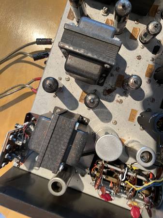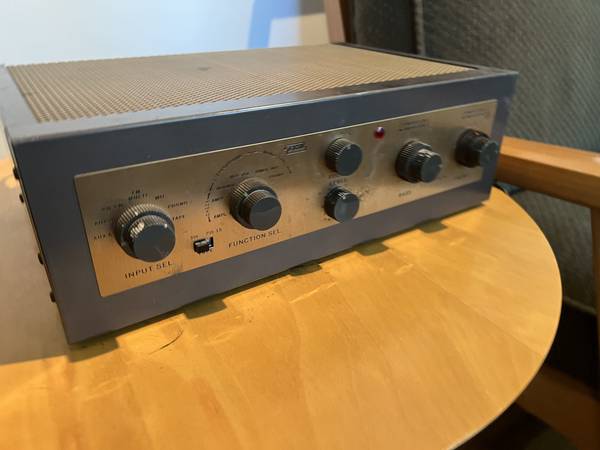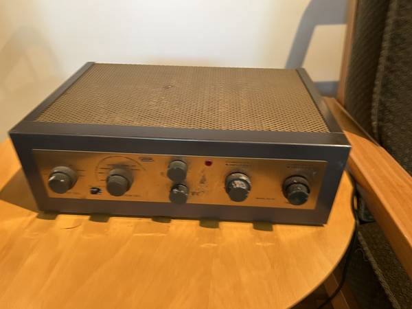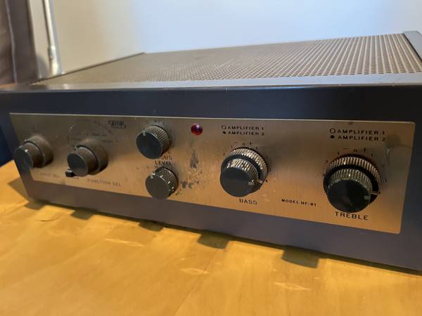 Eico HF-81 (early 1960 model) restored with OS English Mullard power tubes and other OS vintage tubes and with after market rear on/off switch so front treble pot doesn't get worn out. Simply put, this is one of the best stereo amps ever made, The sound scape, warmth, clarity is amazing. Only 18 watts per channel (will need efficient speakers). Frank Sinatra and Miles Davis never sounded so good.