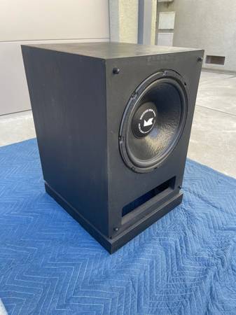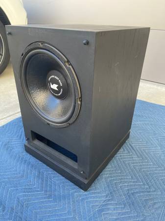 This is the classic M&K dual 12” push-pull sealed design, known for extremely clean, tight, musical bass with low distortion. The surrounds were professionally refoamed a few years back, and the subwoofer still performs beautifully.