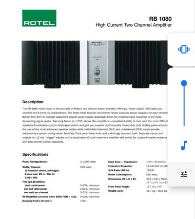 Rather robust... Rotel Hi-Fi RB-1080 LucasFilm THX Ultra certified hi-current 2-channel power amplifier in black finish, sounds simply scintillating, has enough kick-ass power to drive virtually any speaker set, and is available for sale with silver face, in fine condition with digital owners manual.