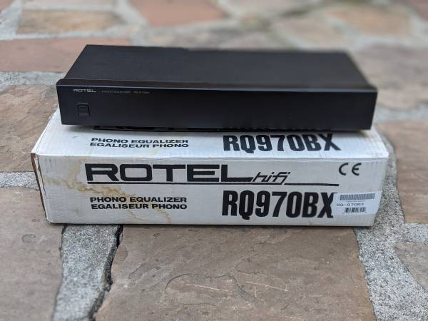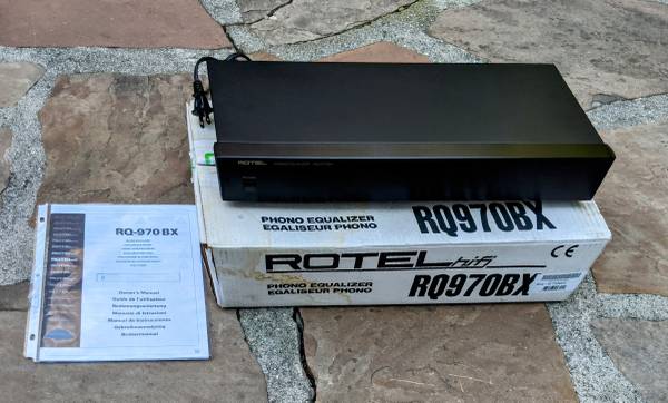 Rotel RQ-970BX phono moving magnet or moving coil cartridge pre-pre EQ amp is in spotless condition, is super quiet, sounds terrific and is available for sale in original packaging complete with user manual.
