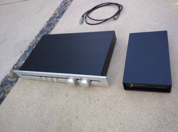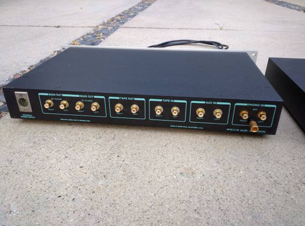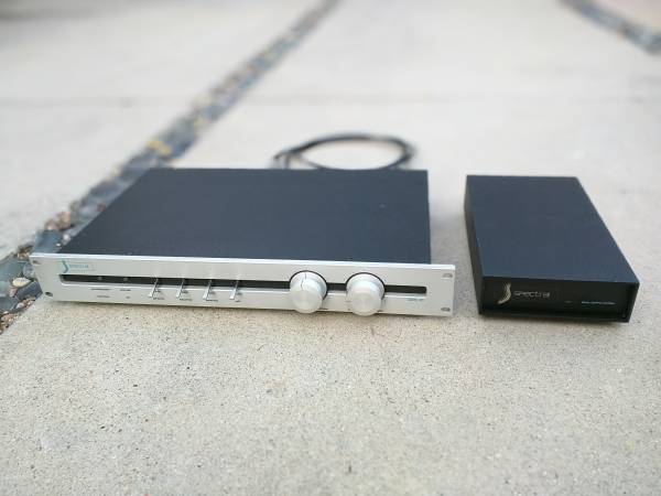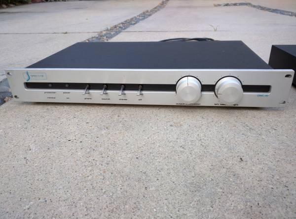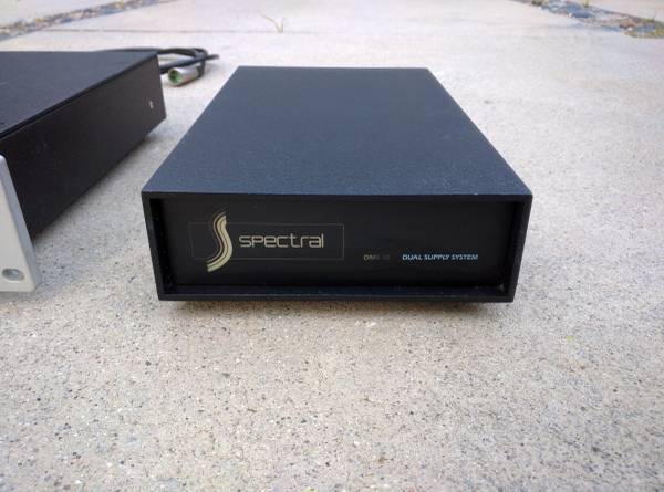 Spectral Audio Associates, hand crafted in the USA in Sunnyvale CA, DMC-10 series-Gamma reference-standard solid-state pre-amp with separate DMS-10 power supply in excellent 9/10 condition and DMA-100 solid-state Dual-Monoblock MegaHertz class-A power amplifier in very good 8/10 condition, sound superb, and are available for sale together, as a complement pair.