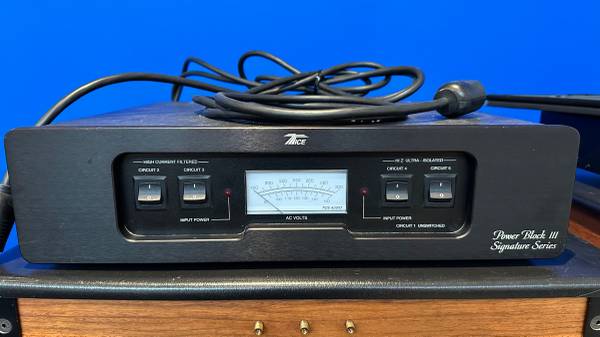 Tice Powerblock III Signature High Power (HP) version Power Conditioner. For both audio and video, or mixed applications whether in home audio and video and pro AV environments. Can handle massive amounts amplifier power without chocking power with a 1200W amp circuit.