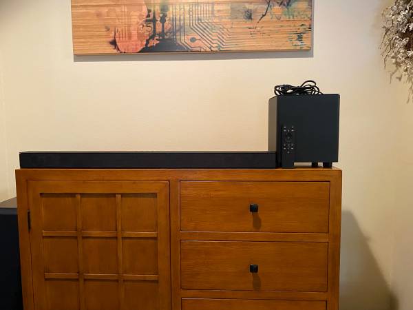 MINT condition, great sound! Item comes with soundbar, subwoofer, remote, hdmi cable, and power cord. You know you want it! Come and get it! This same exact soundbar is on Ebay for $120 and $110....
