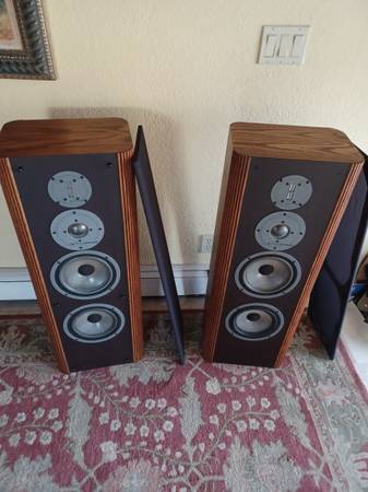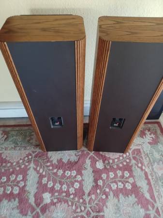 Dual 8" woofers, polydome mid, emit tweeter Note: 1 speaker missing grill pegs