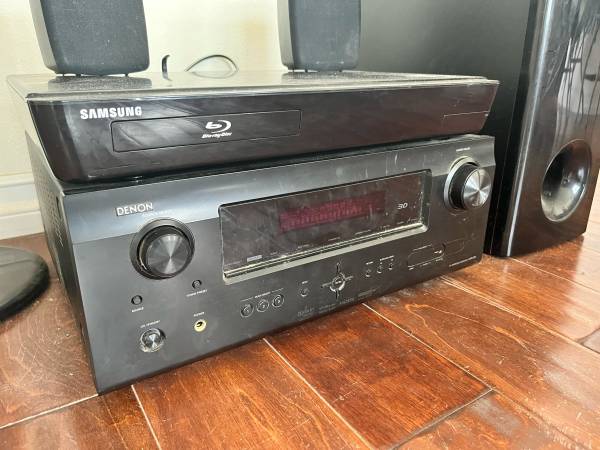 Samsung 5.1 CH Blu-Ray Home Theater System Model # HT-BD1200T with Denon Receiver Includes: Blu-Ray Player with video/audio cables 6 Speakers with wiring Remote Owner’s Manual & Denon Receiver...
