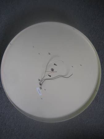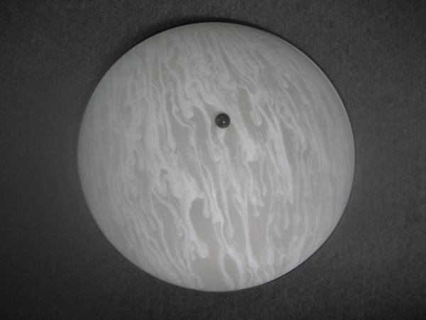 FLUORESCENT ROUND FLUSH-MOUNT CEILING LIGHT FIXTURE, ideal for hotels, high rises, office buildings, hall ways, approximately 21.5"dia x 8"high, 277 Volt, 60 Hz, 0.35 Amp,takes one 40W and/or one 32W T-9 circular light bulb, quick start, custom made by Orion Chandelier, acrylic dome with brass rim, dome has a classy cloud like design. Few fixtures available.