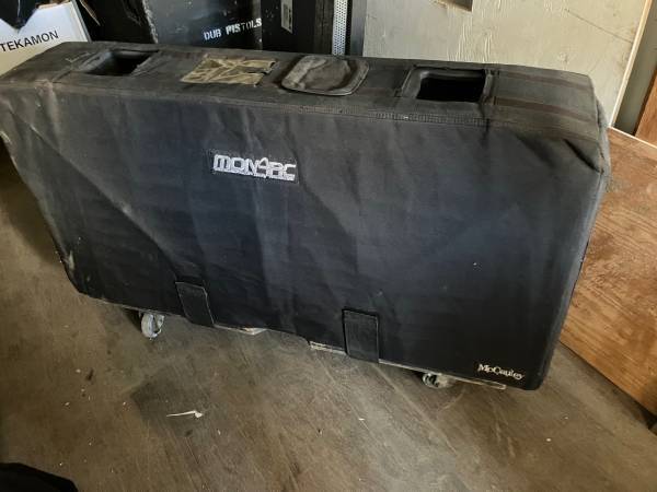 Pair of the rare McCauley Monarc MLA3 array cabinets. Very rare to see these up for sale. Both cabinets work and sound great but each is missing it's 12" speaker. Comes with case cover and original wheel dolly casters. Have some light wear as pictured. Local pickup in West Los Angeles.