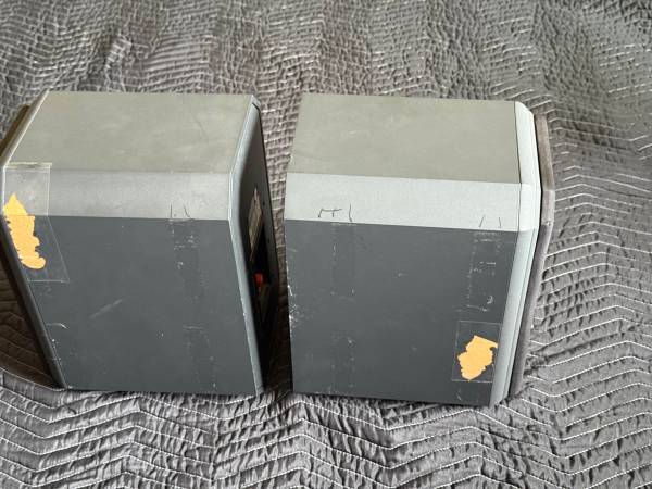 Cabinets have strips of Velcro currently applied on bottom for earthquake safety.(see pictures) Cabinets show a few Sharpie marks and spots where Velcro removal peeled off a small portion of speakers' vinyl coated exterior. (see photos). Perfect working condition. NEVER tortured with high SPLs, etc. Excellent near-field monitors, IMO. NOTE: These System 600's have the EXTREMELY RARE CUSTOM GRILLES in black, with Tannoy logo on the grilles as well as on the speaker cabinets. $275/pair or best offer. Cash + local only please.