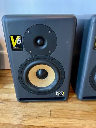 Affordable active monitors seem to be one of the major growth areas within the project studio market, so it's no surprise that Californian speaker company KRK have drawn on the technology developed for their V8 active monitor to produce this scaled‑down V6 version. Measuring 33.2 x 22.9 x 25.4cm, the 21lb V6s are solidly built from MDF with internal crossbracing. The heavily radiused corners ward off cabinet‑edge diffraction which could otherwise compromise stereo imaging. KRK's familiar textured grey finish and slot‑shaped bass port give the speakers a distinctive family feel, even though the yellow kevlar cone of their larger monitors isn't evident on this model. The bass/mid is served by a six‑inch, polyvinyl‑coned woofer with a high‑sensitivity voice coil, while the highs are presented via a one‑inch, silk‑domed tweeter. The bass/mid dust cap is concave, rather than the more usual convex design, and a profiled mounting ring is used to smooth the transition from the speaker edge to the baffle. An integral magnetic shielding system makes the V6s suitable for use near TVs or computer VDUs, and KRK envisage the compact format will also draw interest from the mobile recording, DAW and broadcast markets.