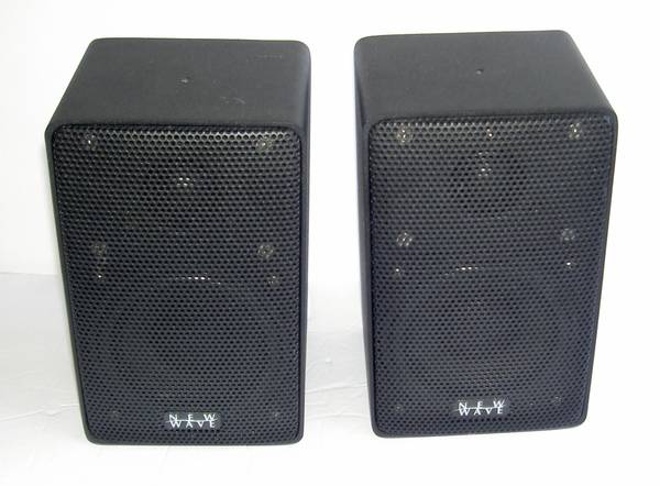 This is a pair of New Wave satellite speakers. They are in excellent condition and sound great. They are 7" tall and each one weighs 4 lbs 11 ozs. If interested please call or email for more info.