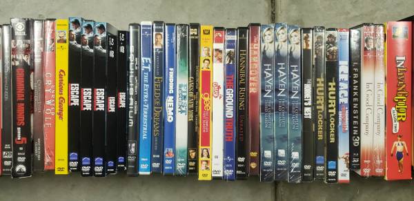 We are clearing our DVD & Blu-ray collection which consists of 150 titles and parting with everything starting at $3/disc for a majority of the titles. If interested, see photos which have the spines of all titles and let us know which you may want us to pull. You are welcome to visit as well to go through them all.