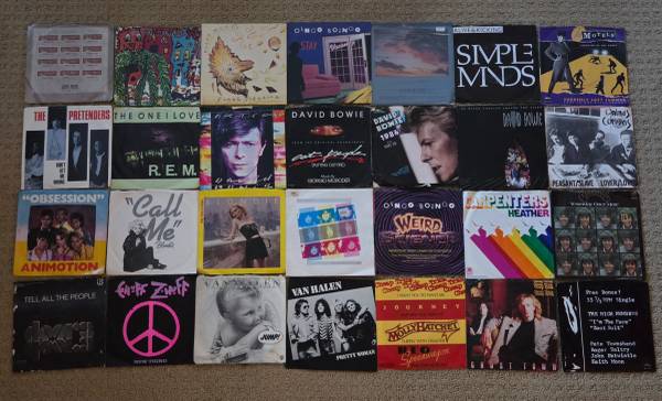 Selling a Collection of over 200 vinyl record 7 inch singles. Most of these are in excellent condition. See pictures for details. Selling all together for $100.