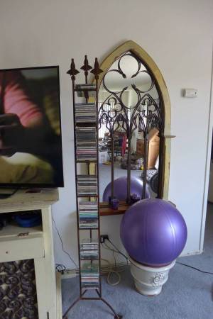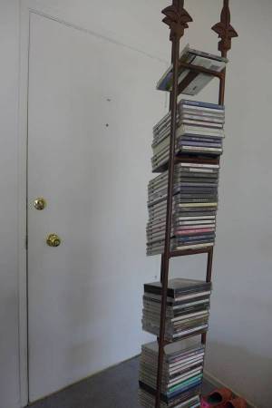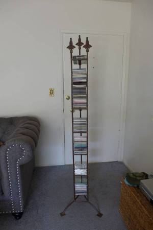 I absolutely love this CD rack but am switching out my decor. It has a gorgeous antiqued patina and holds a lot of CDs. It currently has 87 CD's (not included) and looks like it could hold 40-50 more.