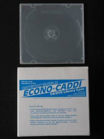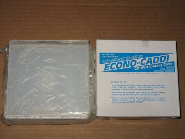 Poly media storage cases for cds, dvds, blu-ray discs and computer software discs. They're in new condition. These Econo-Caddi Vision cases are square in shape and can hold up to two discs and a front cover, such as a cd booklet. Very compact. They are made of a durable plastic that doesn't crack like the cheap slim cd cases. They measure 4-7/8"(h) x 5-3/16"(w). These cases are hard to find. You won't find them cheaper anywhere. Great quality cases at a great price. They're great for promotional use, church cd handouts, media collections and mailing. This is a land line phone number so NO TEXTING. Call me at 310 area code 3 2 4 2 2 9 4 or email me by clicking on the Craigslist "REPLY" button.