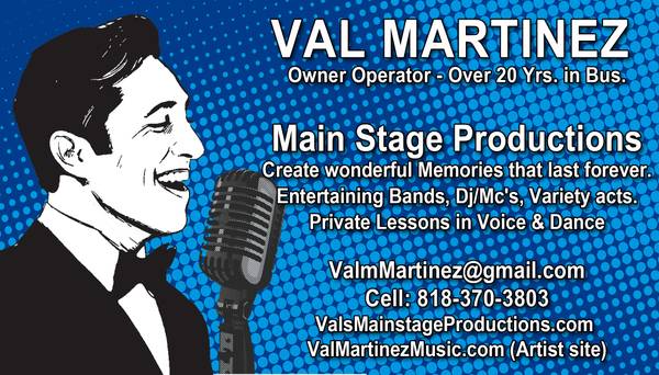 Val Martinez is one of the most unique and enjoyable entertainers in the industry and a DJ/MC of the highest caliber! He started singing professionally at 3 years old and by 19 was a highly successful Singer/Dancer. Becoming a DJ/MC and composer was the next step. Using your music choices, Val always creates a fun and energetic atmosphere that gets people up and dancing.