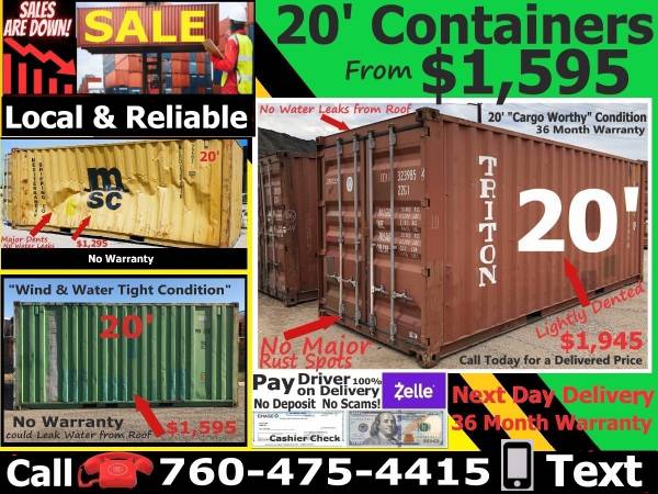 10', 15', 20', 40' and 45' Containers For Sale, Call 760-475-4415